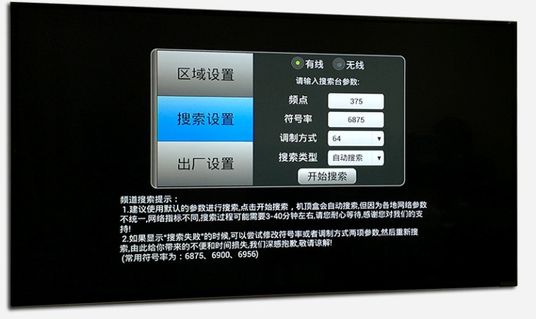 在數(shù)字電視播放界面按菜單鍵三次,可以調(diào)出設(shè)置菜單,可以對(duì)區(qū)域進(jìn)行手工調(diào)整,區(qū)域設(shè)置務(wù)必要設(shè)置正確,泰信盒子是自動(dòng)根據(jù)區(qū)域下載節(jié)目的,因?yàn)楦鞯貜V電數(shù)字電視采用的技術(shù)不統(tǒng)一,如果區(qū)域設(shè)置錯(cuò)誤,可能無法收看廣電數(shù)字電視節(jié)目