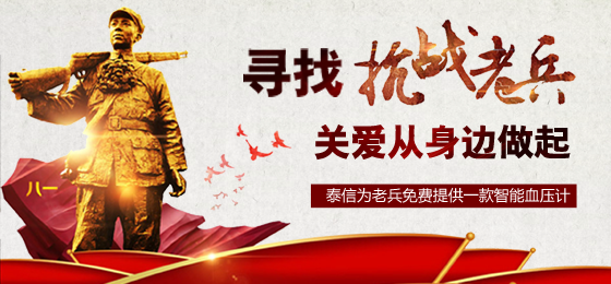 如果您身邊有健在的抗戰(zhàn)老兵,能夠獲悉他們的故事或狀況,請(qǐng)于9月3日之前將聯(lián)系方式告知我們,聯(lián)系電話:400-006-5311。泰信將提供100個(gè)智能血壓計(jì)表達(dá)對(duì)老兵的敬意。
