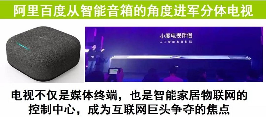在機(jī)頂盒上加個(gè)音箱就是分體電視主機(jī),可實(shí)現(xiàn)智能音箱與智能電視的融合,電視主機(jī)市場(chǎng)進(jìn)入門檻降低,屆時(shí)傳統(tǒng)的音響廠家也可能加入戰(zhàn)局。如果成為趨勢(shì),運(yùn)營(yíng)商盒子也會(huì)朝分體電視方向升級(jí),電視機(jī)廠家擔(dān)心將被打回電視顯示器的原形,夢(mèng)斷電視運(yùn)營(yíng)商轉(zhuǎn)型之路。