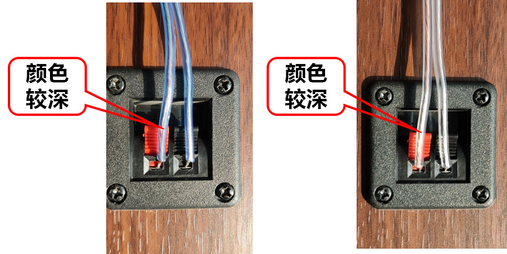 特別注意:顏色較深的接紅色接線柱。同樣的道理,如果使用T70配自購(gòu)的音箱,接線一定要正確。
