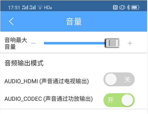 可以通過(guò)手機(jī)端,進(jìn)入我的\設(shè)置\聲音設(shè)置,調(diào)高音響最大音量: