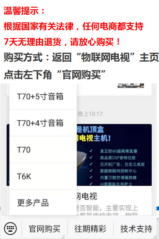方式二:微信掃碼關(guān)注公眾號(hào)“物聯(lián)網(wǎng)電視”購(gòu)買(mǎi)。