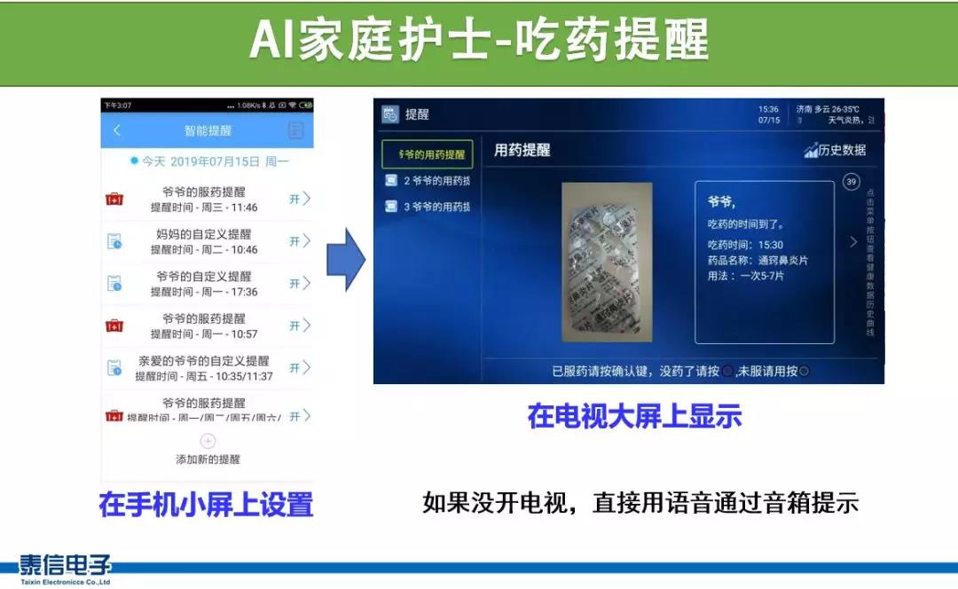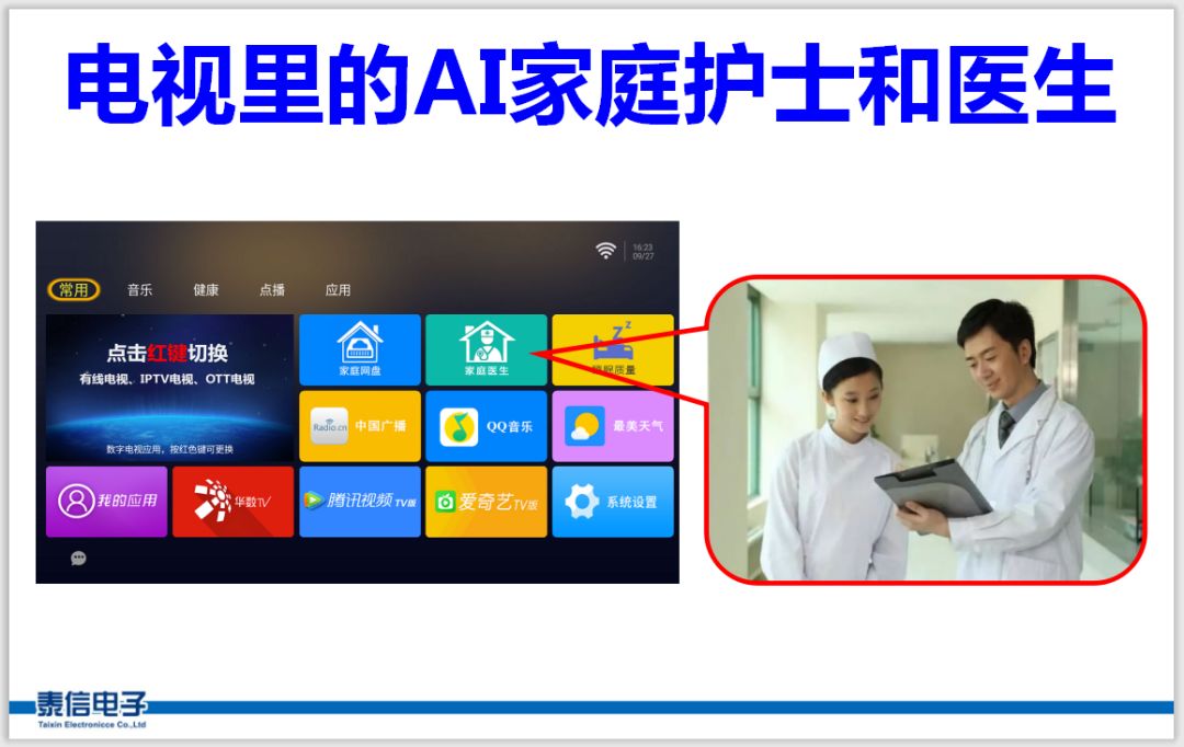 要是一個有個專職護士按時提醒老人吃藥就好了,最好還不花錢。這等好事還真有!使用泰信物聯網電視主機,里面內置了免費的AI護士和家庭醫生。