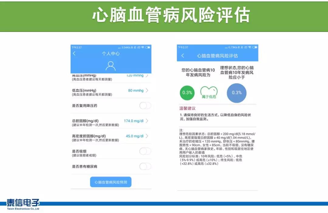 告訴AI醫生我們的血壓、膽固醇等數據,AI醫生能自動記下來,預測心腦血管發病的風險系數,并給出變化趨勢,提前預警。