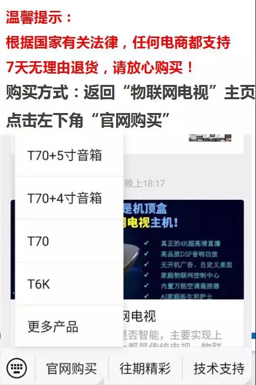 如果你的電視機是2016年之后購買的4K HDR電視,可以使用T70升級,點擊以下圖標可購買“T70+5寸音箱”優惠套餐: