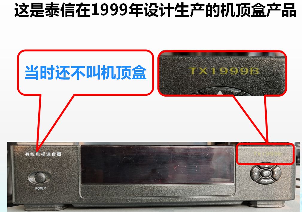 TX1999B是泰信在1999年生產的一款“有線電視選臺器(機頂盒的曾用名)”。此后,Digital Set Top Box(數字機頂盒的英文)技術開始從國外引入中國。“選臺器、機上變換器、上下變頻器”的老稱謂逐漸被“機頂盒”代替。讓人意想不到的是,這款20年前生產的TX1999B,在通電后還能正常工作(點擊了解更多)。