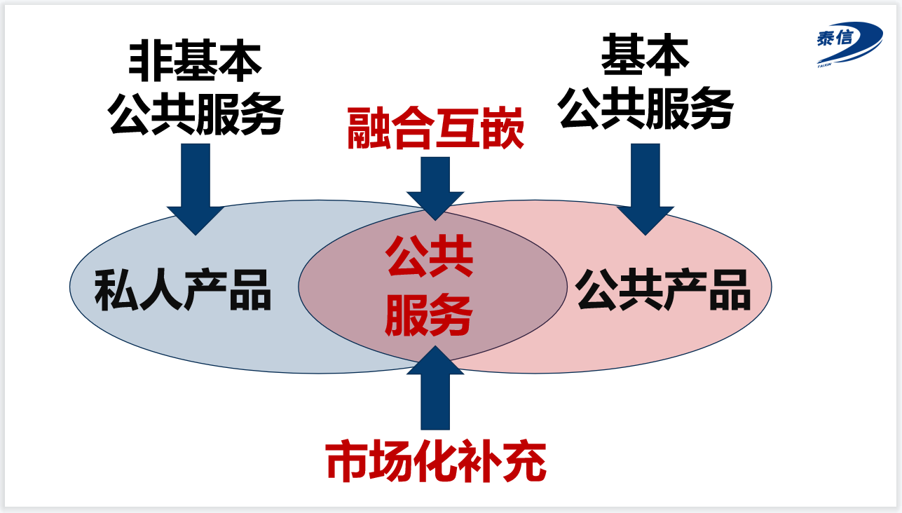 公共服務要覆蓋收入差距如此懸殊的群體,需要將公共服務分為市場化提供的非基本公共服務,也叫私人產品,以及覆蓋全民的基本公共服務,也叫公共產品。二者融合互嵌,共同完成公共服務。
